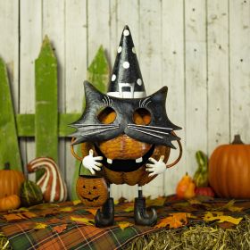 "Binx" 26" Tall Iron Pumpkin Masquerade Cat Halloween Figurine