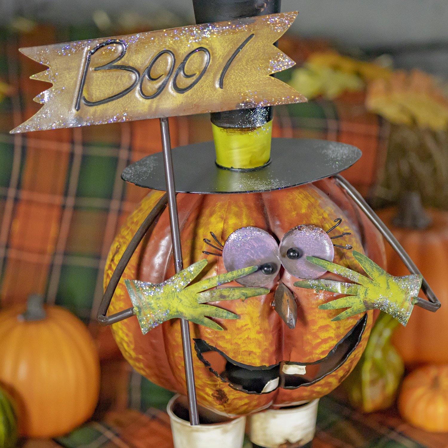 Home > 28.25" Tall Top Hat Jack-O-Lantern Figurine with BOO Sign