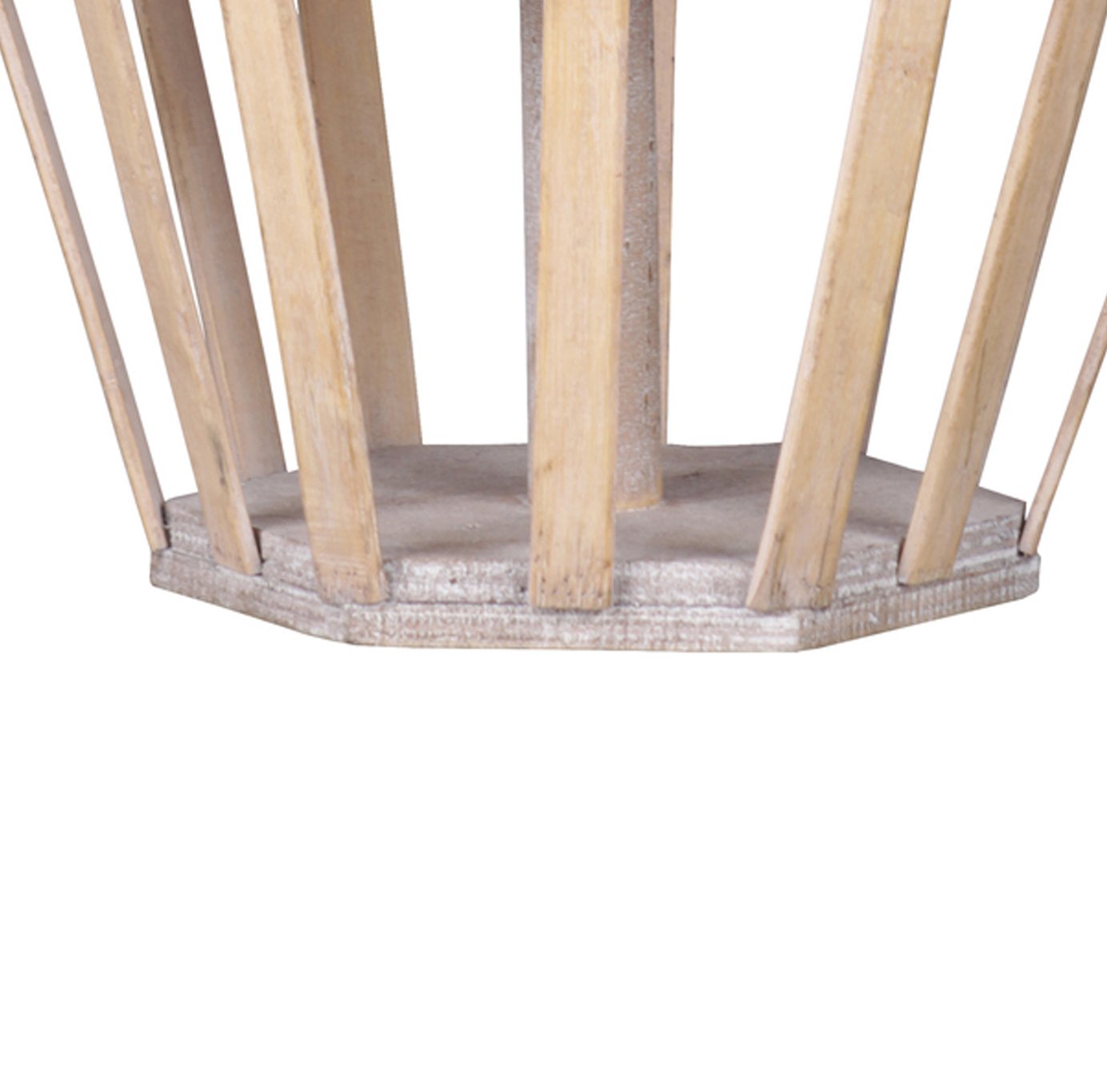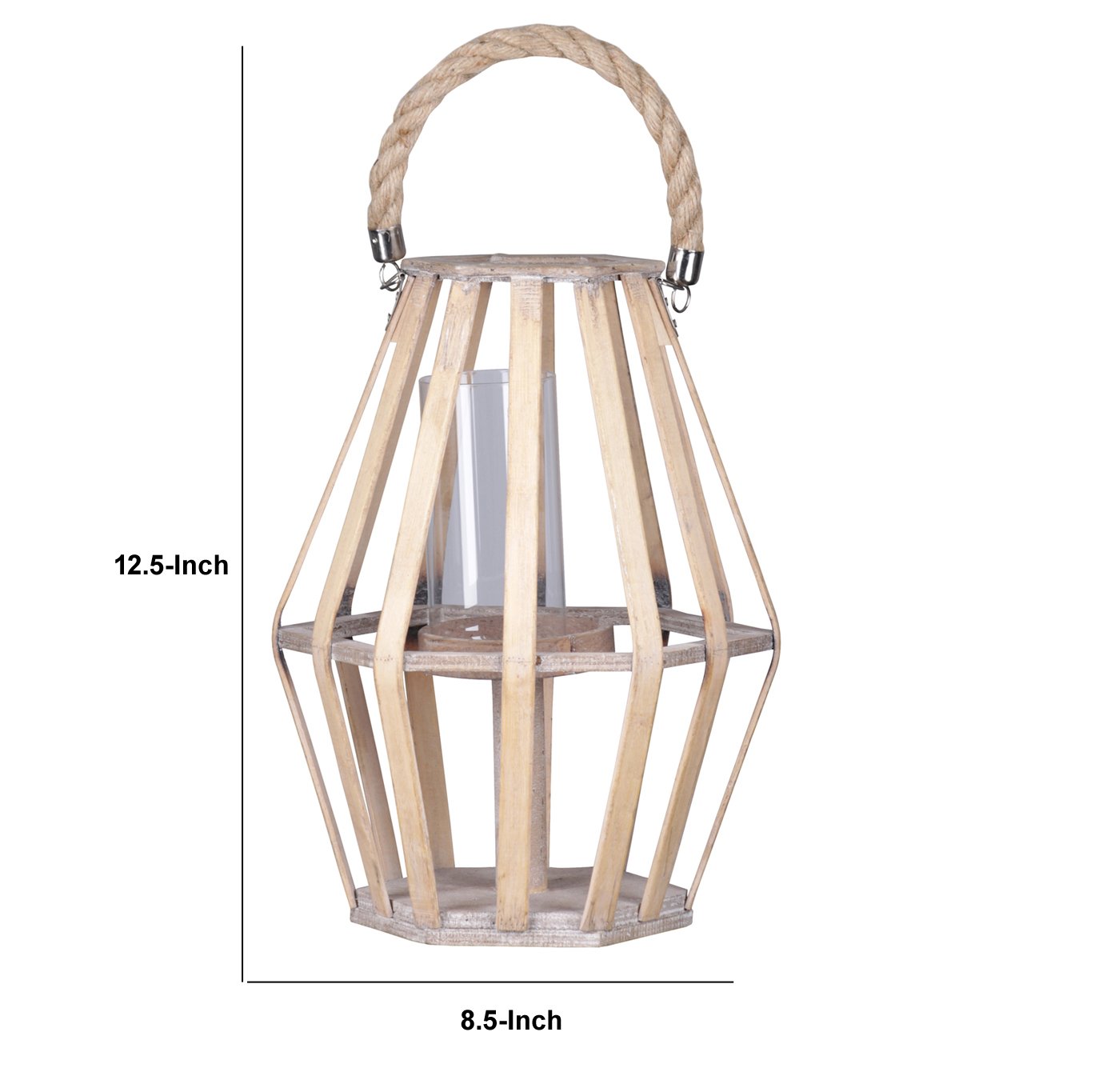 Wooden Lattice Pentagon Lantern with Rope Handle, Beige
