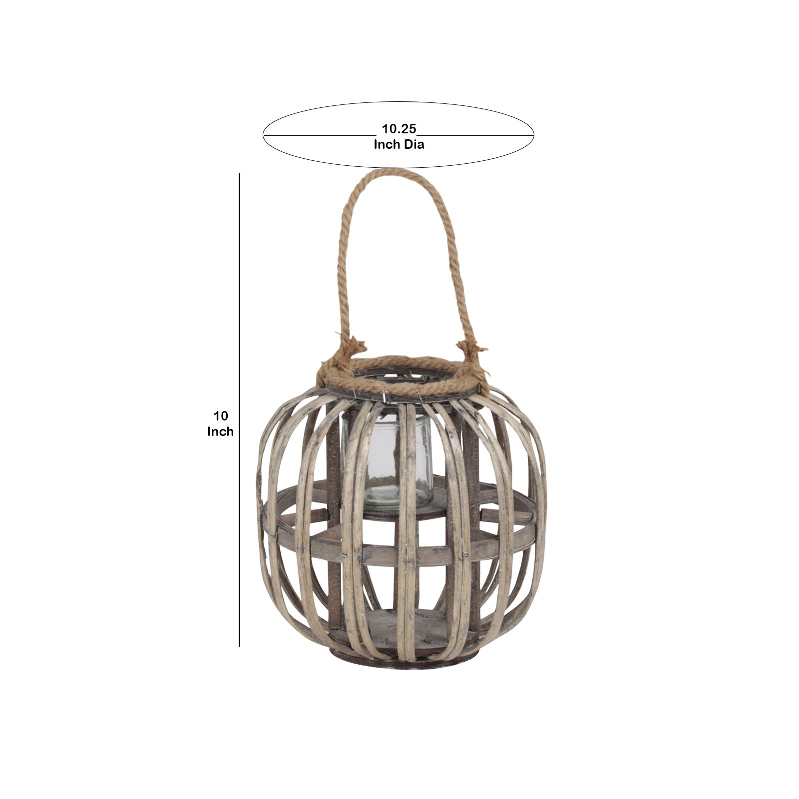 Elevate your home decor with the inclusion of this wooden, round shaped lantern featuring a lattice design frame. Accompanied by a glass hurricane candle holder at the center, it incorporates a rope handle that offers portability, while the round base ensures stability.