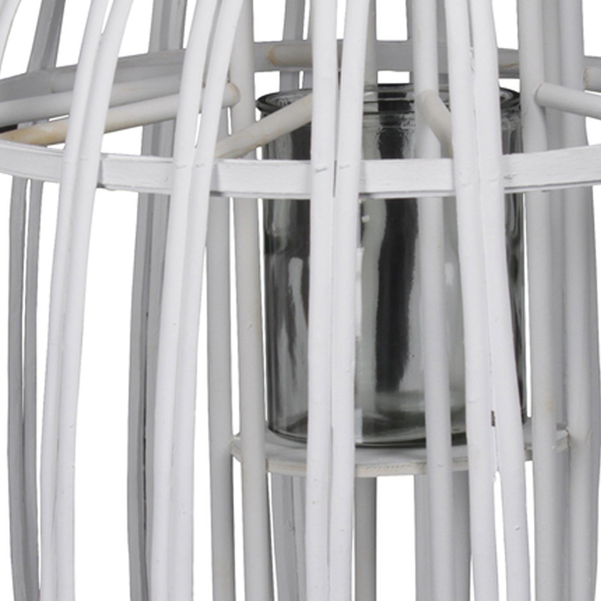 Lattice Design Round Lantern with Glass Hurricane Candle Holder, White