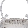 Elevate your home decor with the inclusion of this wooden, bellied shaped lantern featuring a lattice design frame. Accompanied by a glass hurricane candle holder at the center, it incorporates a rope handle that offers portability, while the round base ensures stability.